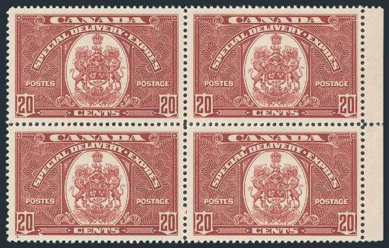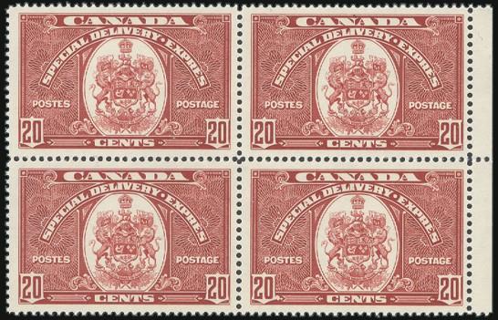 6760 E10a imageE10a, Gorgeous sheet margin block, bright fresh colour, large margins all around, XF, NH. Only a few blocks known as only 75 pairs exist. Has 2021 PSE Certificate graded XF 95 (Image) (View Certificate)