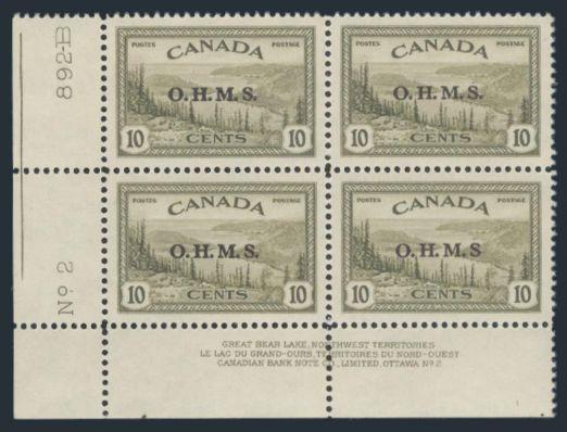 6812 O10 imageO10, LL Plate Block. VF, NH (Image) Cat 700.00