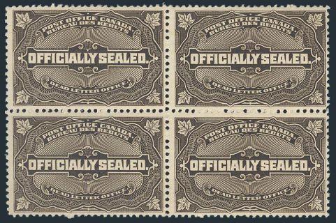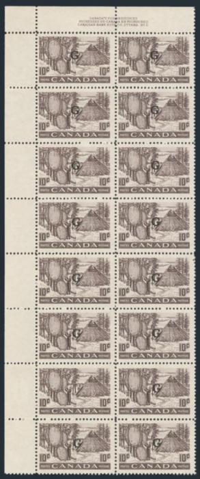 6830 O26a imageO26a, A choice UL Plate #1 Block of 16 showing the MISSING "G" variety at Position 31. Perfectly centered, pristine fresh, XF, NH (Image) Cat 2,400.00