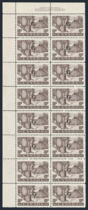 6829 O26a imageO26a, Block of 6 with the "MISSING G" variety on the left middle stamp. Fresh, F-VF, NH. VERY SCARCE (Image) Cat 1,012.00