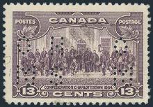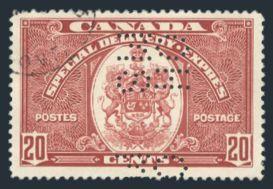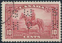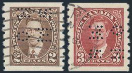 O231 and O250, Horiz pairs with one stamp in each having DOUBLE PERFIN error. Also O241 and O249 singles having DOUBLE PERFINS. F-VF (4 items)