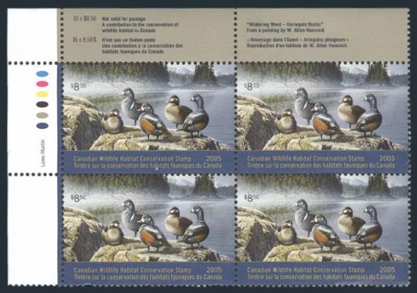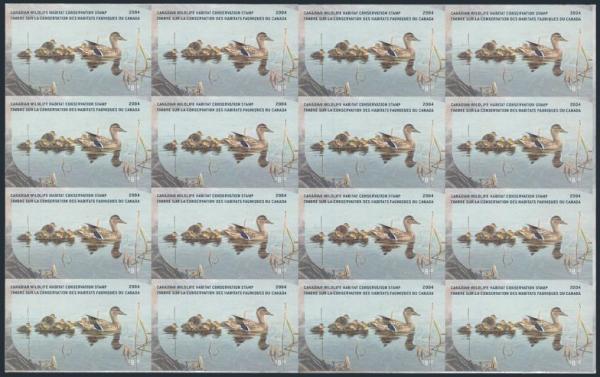 7021 FWH20 imageFWH20, Complete sheet of 16 of the $8.50 Mallards IMPERFORATE, printed on card. Possibly of proof origin. VF. Rare (Image) Estimate 500.00+ $Cdn