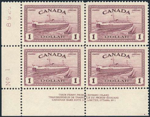 268/315, Collection / accumulation of mint KGVI Plate Blocks neatly displayed on black stocksheets. Has many matched sets, diff plate numbers and extras. Has many better like 20¢ Combine (6), 50¢ Lumbering (6), $1 Ferry (5); 50¢ Oil (10), etc. F-VF, mostly NH. Previous owner said Cat $4,500 (100's) (Image)