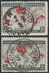 7337   imageCANADA 2¢ MAP STAMPS WITH TOWN CANCELS: