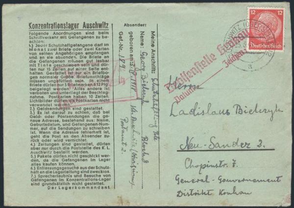 7721   imageGERMANY WWII AUSCHWITZ CONCENTRATION CAMP MAIL: