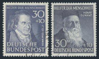 Collection of post war Germany all identified in white cards, primarily 1950's-70's. Has a wide variety of commems, defins, semi-postals plus Berlin & some Zones. Lots of better singles & sets here with $10-$100 items. Also a few mints. F-VF. These were priced a few years ago & Cat totals $1,900 (100's) (Image)