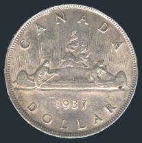 CANADA SILVER DOLLARS: Blue Whitman folder with an accumulation of various SILVER Dollars from 1937-67. Has a variety of diff dates. Condition varies from VF-EF (26) (Image)