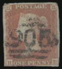 Four full margins, neat black MC cancel, rich colour. VF. A CHOICE EXAMPLE (Image)