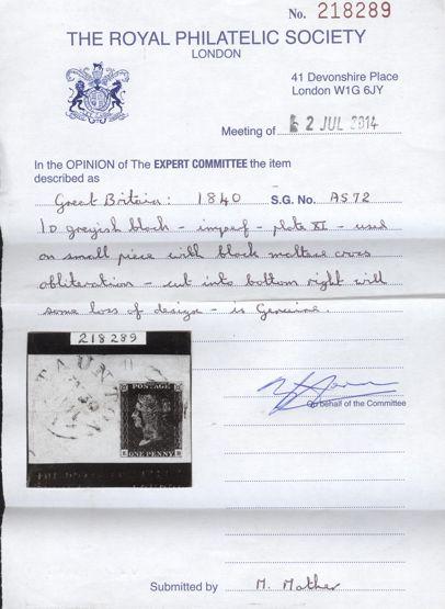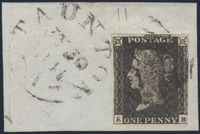 Neatly tied on piece with black MC cancel and neat Taunton 30 Jy, 1841 datestamp alongside. F+. Has 2014 Royal Philatelic Society Certificate. A NICE CERTIFIED EXAMPLE OF THIS SCARCE PLATE (Image) (View Certificate)