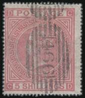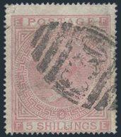 QV Five Shilling pale rose, neat "C30" Valpariso Chile cancel. A nice used abroad cancel. F, minor flt. Cat $1,750 (Image)