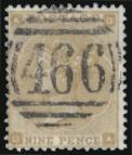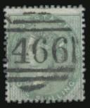 QV 5 Shilling, neat "466" grid oval numeral cancel. F (Image)