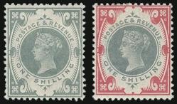 1090 108-9 image108-9, QV 5Sh and 10Sh High Values each with black 'SPECIMEN' (14.75 x 1.75mm) overprint. Beautifully centered, fresh rich colours, VF, LH (Image) Estimate 800.00+ $Cdn