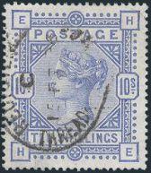 1093 109 image109, QV Ten Shilling, beautifully centered, deep rich colour, neat Sunderland 21 No, '87 CDS. XF. AN OUTSTANDING STAMP! (Image) Cat 768.00+