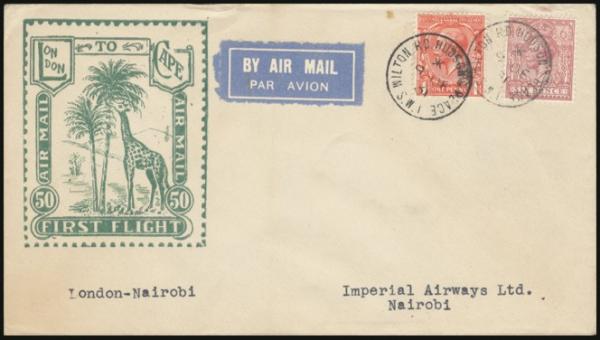 Tied on cach Imperial Airways FFC from London to Nairobi 9 Dec 1931. F-VF (Image)