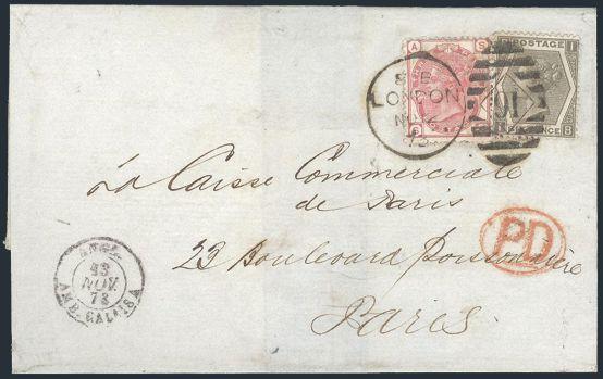 11), Tied by London 12 Nov 1873 duplex cancel on cover to Paris France (rec b/s). VF (Cat $470 US on cover) (Image)