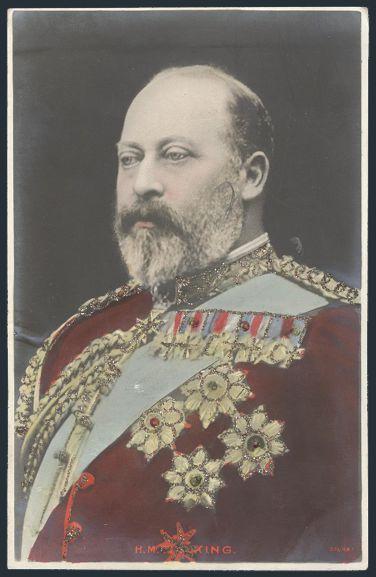coloured bas-relief postcard of KE circa 1905, with glitter. VF (Image)