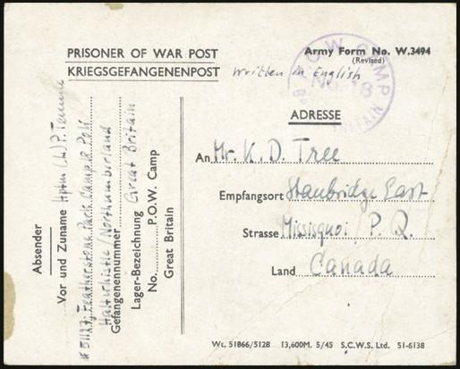 1361   imageTwo diff printed POW postcards from 1947 used by WWII Germans still being held in British POW Camp #18 in Northumberland after the war ended in 1945. Each is addr to Canada with POW Camp h/s's. F, a few creases/stains (Image) Estimate 75.00+ $Cdn