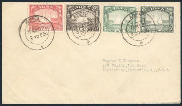 1363 1-4 image1-4, Four diff Dhows tied by Aden 7 May, 1938 CDS's on cover to USA. F (Image) Estimate 45.00+ $Cdn