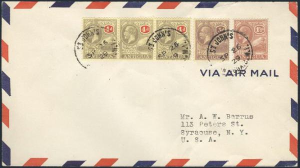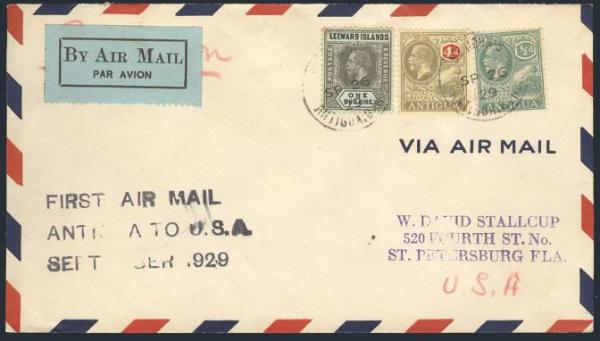1412 42, 59 image42, 59, Also Leeward Islands #76, Tied on cach St John's to San Juan, PR 26 Sept 1929 FFC. Addr to USA. Flown by Charles Lindbergh. VF (Image) Estimate 65.00+ $Cdn