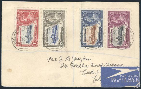 1625 11-14 image11-14, Cpl SILVER JUBILEE set neatly tied by Maseru 31 Dec, 1935 CDS's on Reg'd Airmail cover to England. F (Image) Estimate 50.00+ $Cdn