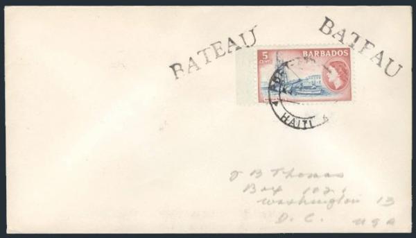 1622 439 image439, Tied by PORT AU PRINCE, HAITI CDS (circa 1955) on Paquebot cover to USA. Has "BATEAU" h/s struck twice. VF. Pretty (Image) Estimate 45.00+ $Cdn