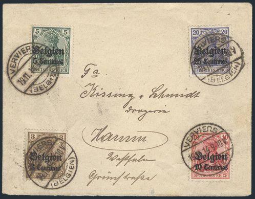 by Verviers 19 Nov 1914 CDS's on WWI German Occupation cover to Hamm, Germany. F-VF (Image)