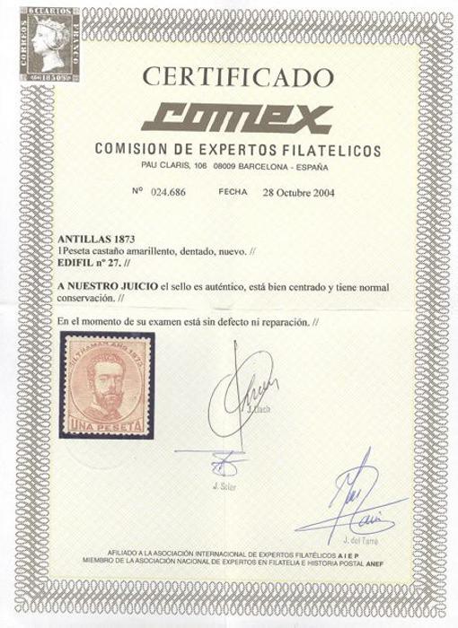 1982 57 image57, King Amadeo One Peseta High Value. VF. Has 2004 COMEX Certificate (Image) (View Certificate)