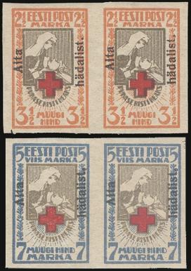 2170   imageOTEPAA, Two diff imperforate 1941 local charity stamps, one is 20 & 20k, other 30 & 30k type 2. Rare (Mi #'s 1B & 2BII, Cat 3,800 Euro) (Image) Estimate 1,500.00+ $Cdn