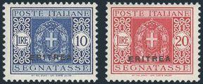 2156 Q9-21 imageQ9-21, Complete set to 20 Lire. VG-VF, some gum toning but almost all NH (Q19-21 are signed). Scarce set (Image) Cat 1,541.00