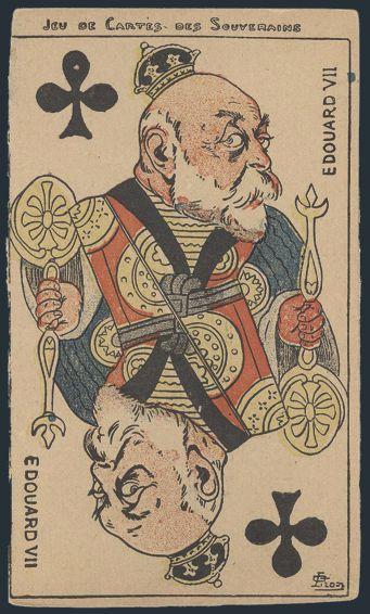 coloured postcard circa 1908 depicting the JACK OF CLUBS playing card with the portrait of KING EDWARD VIII. VF. A MOST UNUSUAL ITEM! (Image)