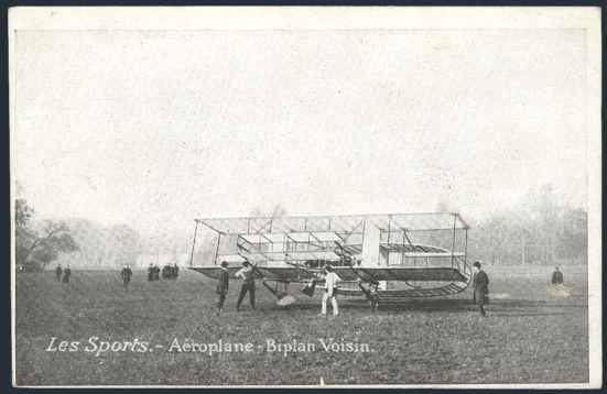 postcard circa 1910 depicting a VOISIN BIPLANE. A scarce early aviation postcard. F (Image)