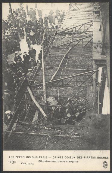 of 4 diff unused b/w postcards depicting the damage & loss from a GERMAN ZEPPELIN ATTACK in Paris in 1916. VF (4) (Image)