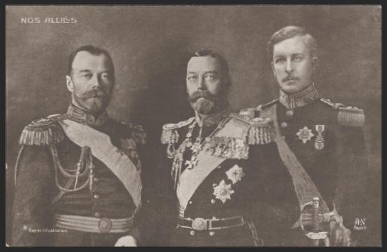 patriotic WWI postcard depicting portraits of "OUR ALLIES". Shows the Russian Czar, KGV and Belgian King Albert. VF (Image)