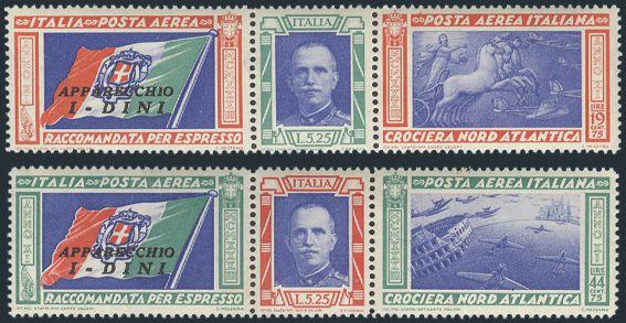 2694 C48-9 imageC48-9, Balbo triptychs with "I-DINI" overprints. VF, NH (Image) Cat 575.00