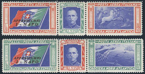 2697 C48-9 imageC48-9, Balbo triptychs with "I-NAPO" overprints. VF, NH (Image) Cat 575.00