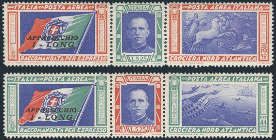 2696 C48-9 imageC48-9, Balbo triptychs with "I-LONG" overprints, VF, NH (Image) Cat 575.00