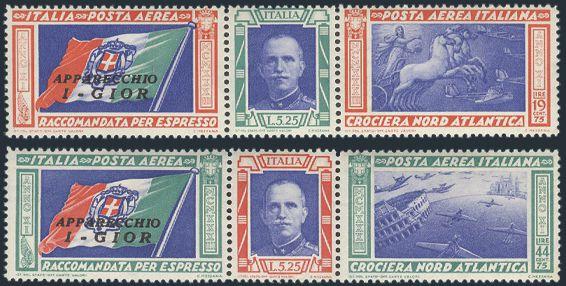 2695 C48-9 imageC48-9, Balbo triptychs with "I-GIOR" overprints. VF, NH (Image) Cat 575.00