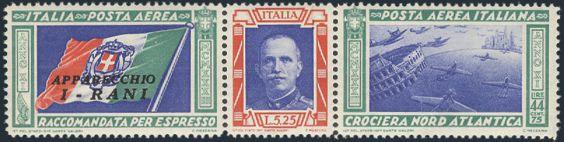 2700 C48-9 imageC48-9, Balbo triptychs with "I-RANI" overprints, VF, VLH (Image) Cat 285.00