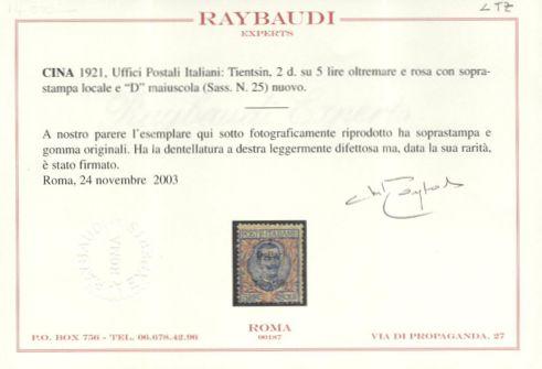 2756 23b image23b, Rare $2 on 5L Type III surcharged High Value, rich colours, VG-F, natural brown streaky OG. A RARITY WITH ONLY 300 STAMPS MADE & FEWER EXIST TODAY. Has 2003 Raybaudi Certificate (Sassone #25, Cat 30,000 Euro) (Image) (View Certificate)