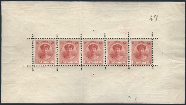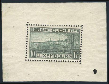 2904 151 image151, Scarce 10Fr View of Luxembourg souvenir sheet, F, natural DG, selvedge has 3 pinholes (Image) Cat 1,500.00