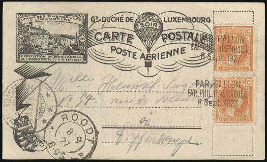 2905 162 image162 (Pair), Tied by special cancels 8 Sept, 1929 on illustrated BALLOON POST postcard. VF. Quite attractive (Image) Estimate 65.00+ $Cdn