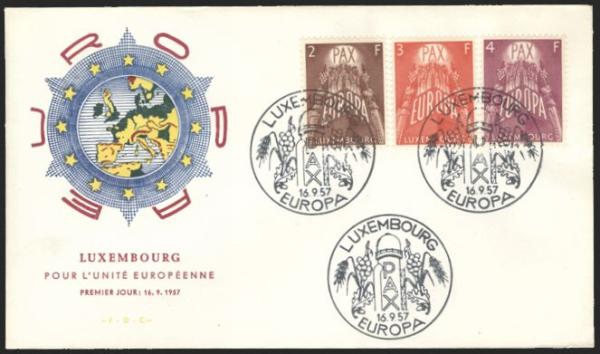 2916 329-31 image329-31, EUROPA set neatly tied on colour cach FDC 16 Sept, 1957. VF (Image) Estimate 40.00+ $Cdn