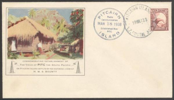 3275   imageNew Zealand #186, Tied by Pitcairn Island / NZ Postal Agency 18 Mar 1938 CDS on Establishment of PITC Radio colour cach cover. VF, unaddr (Image) Estimate 100.00+ $Cdn