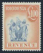 3354   imageScarce £100 Revenue from 1966 depicting the Coat of Arms. Beautiful fresh rich colour, VF, NH (Image) Estimate 200.00+ $Cdn