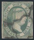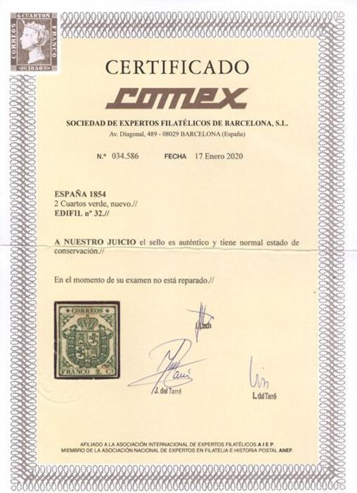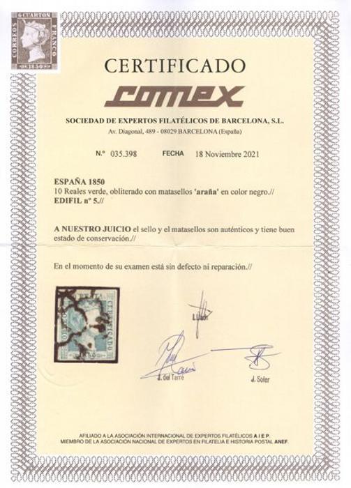 3589 11 image11, Scarce Queen Isabella 10 Reales green. VF. Signed (Image) Cat 400.00