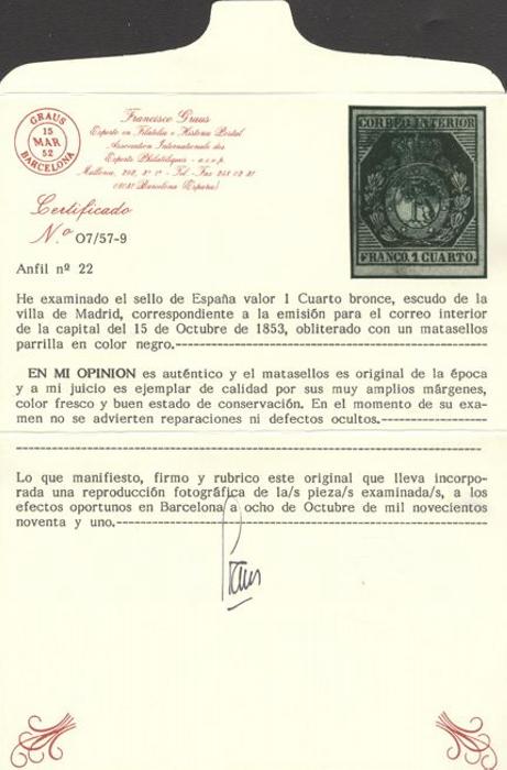 3591 17 image17, Scarce 1¢ bronze Arms of Madrid. VF. Has guarantee b/s & 1991 Graus Certificate. VF (Image) (View Certificate)