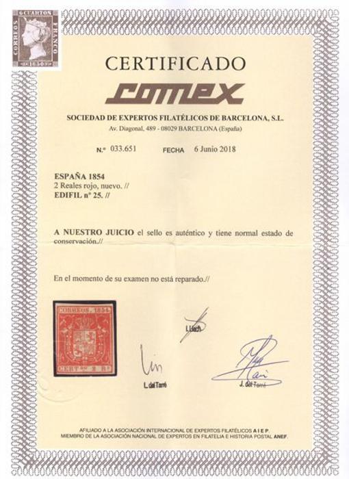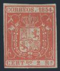 3598 28 image28, Rare Coat of Arms 2 Reales Scarlet. F-VF, OG. Has 2 diff guarantee b/s's & 2018 Comex Certificate (Image) (View Certificate)
