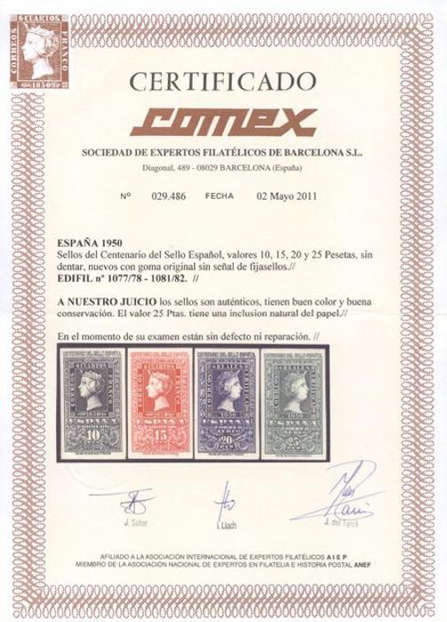 3653 776-9, C127-30 image776-9, C127-30, Scarce Stamp Centenary imperf sets. VF, NH. Has 2011 Comex Certificate for the four highest values (Image) (View Certificate)
