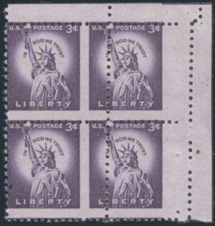 4115 1035 image1035, UR corner margin block with a MAJOR MISPERF error. The left stamps are both oversized and the right stamps are partially unprinted. VF, NH (Image) Estimate 75.00+ $Cdn