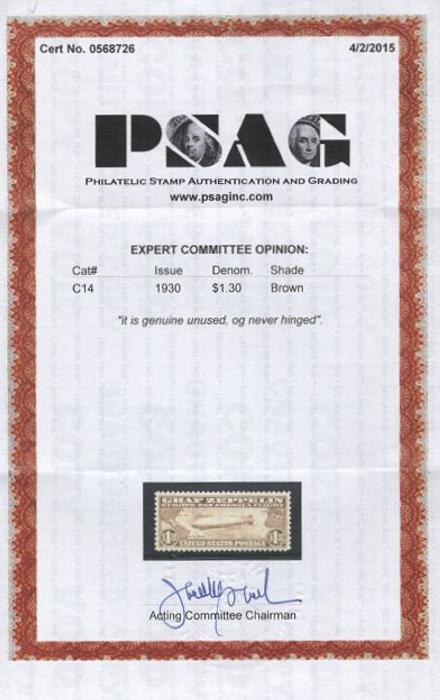 4148 C14 imageC14, $1.30 Zeppelin, beautifully centered, fresh rich colour, XF, NH. Has 2015 PSAG Certificate (Image) (View Certificate)